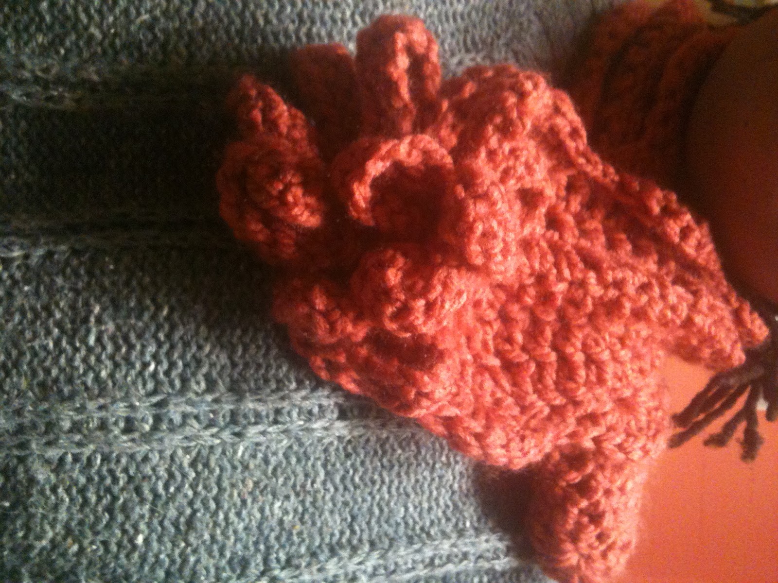 The scarf works up very quickly but I found that the flowers were the trickiest part. Note to self: read directions through thoroughly and more than once in order to understand what is needed.