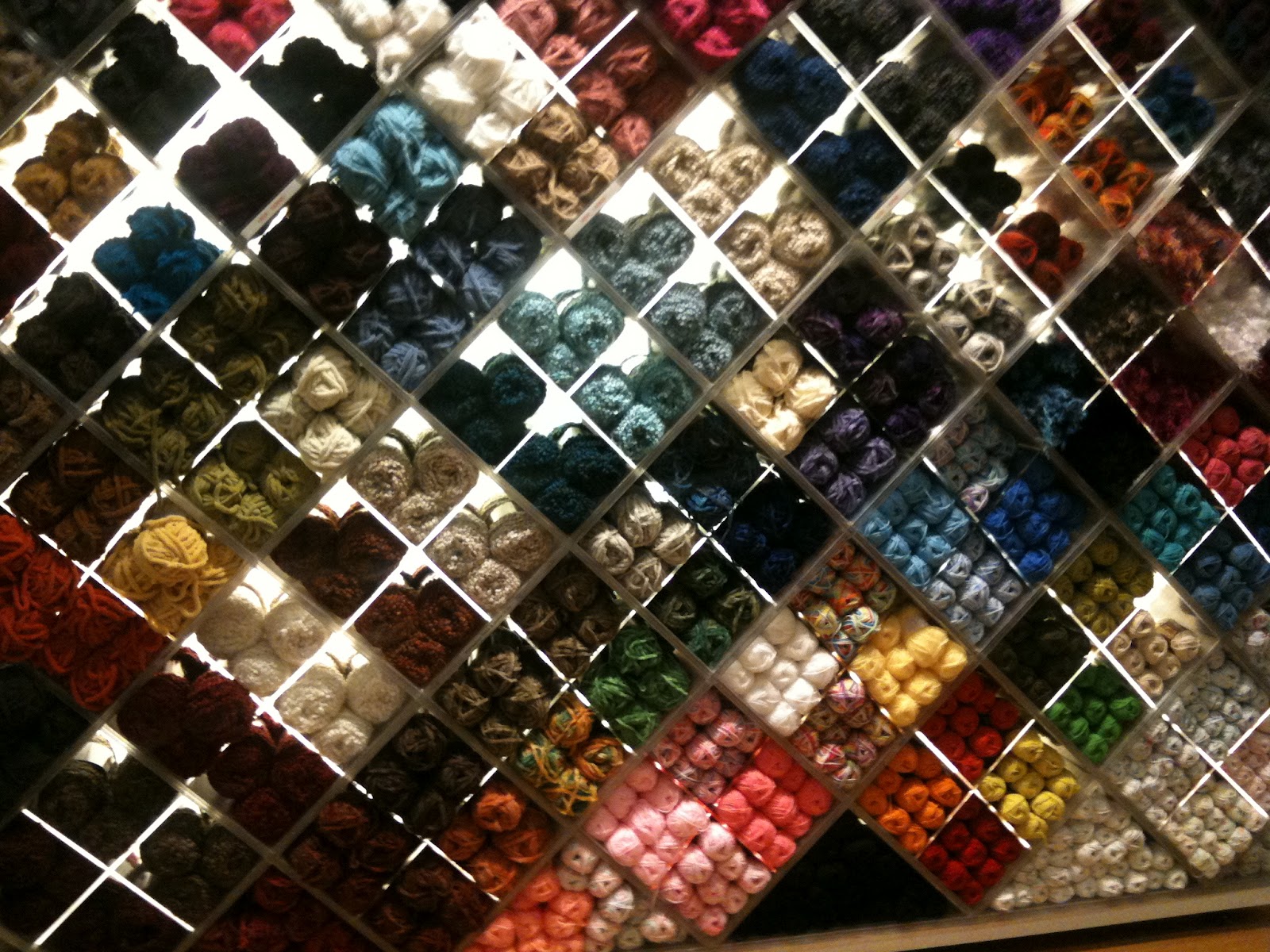 There were displays of completed works such as items from the Martha Stewart collection. These yarns are so soft and bright. My iPhone pictures don’t do justice to the displays in the store, but please to enjoy: