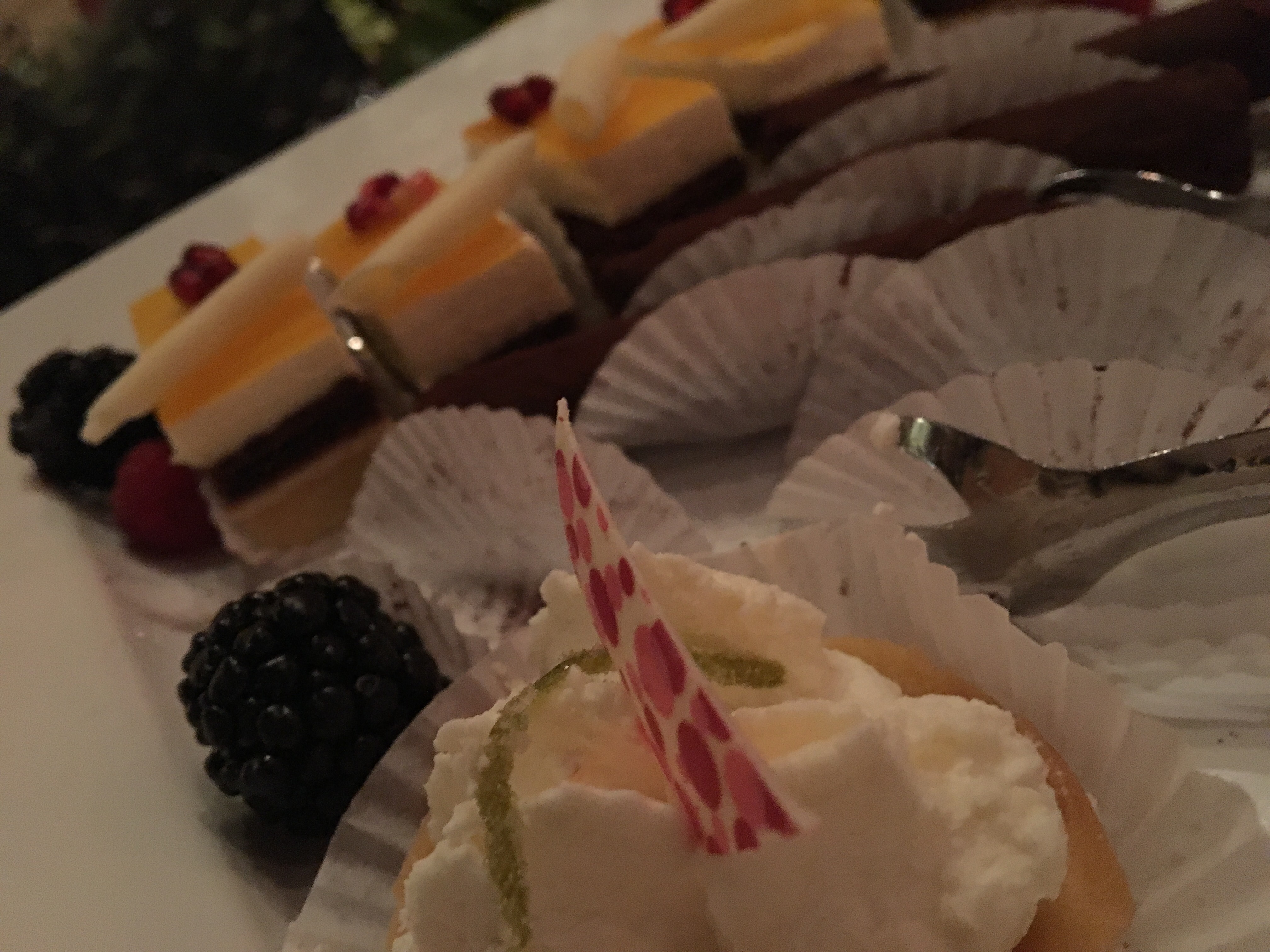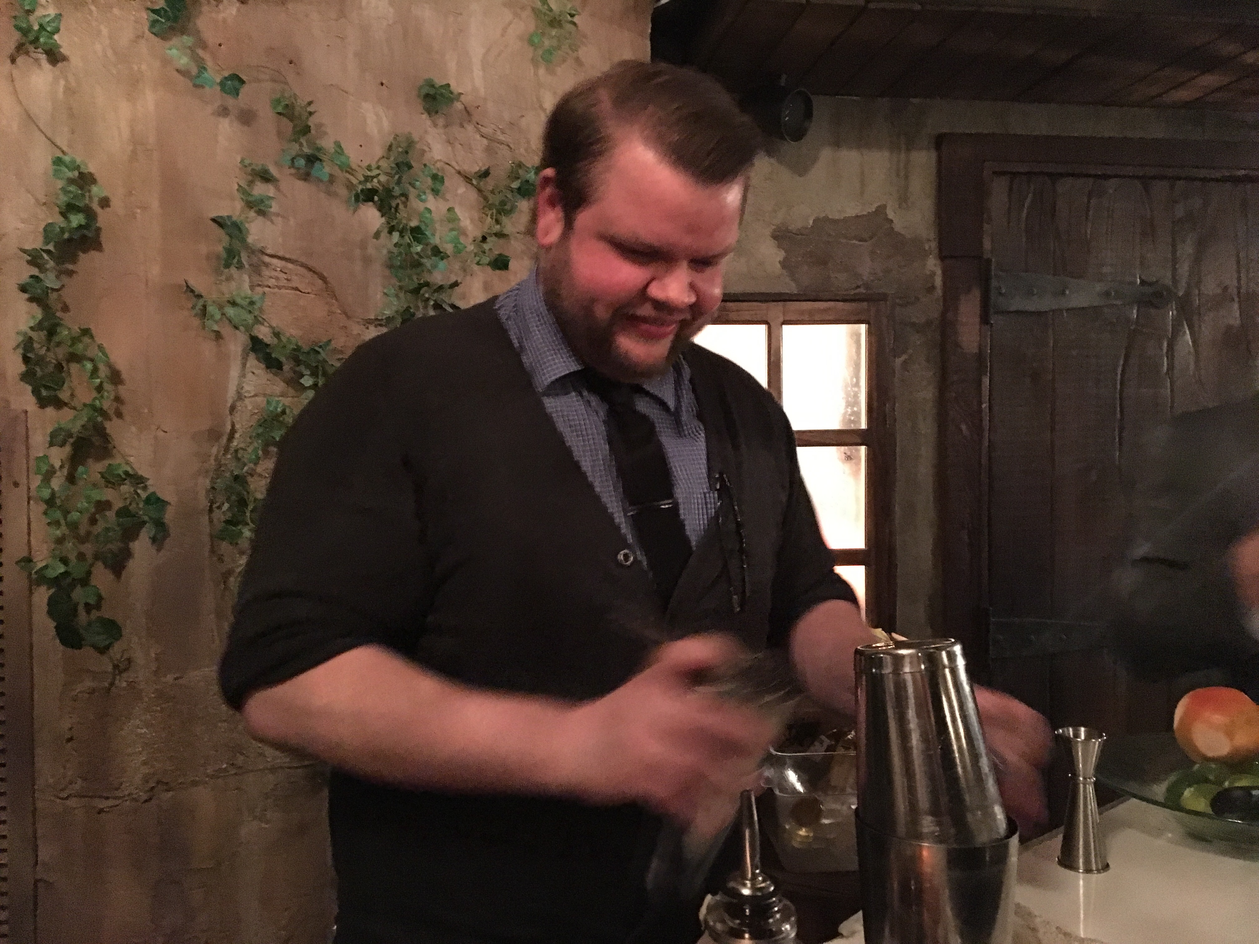Once the fish dish was cooked and awaiting judging by the chefs, we sliced our pie for the judges and headed downstairs to the main part of the school for the cocktail competition, more noshes and dessert.