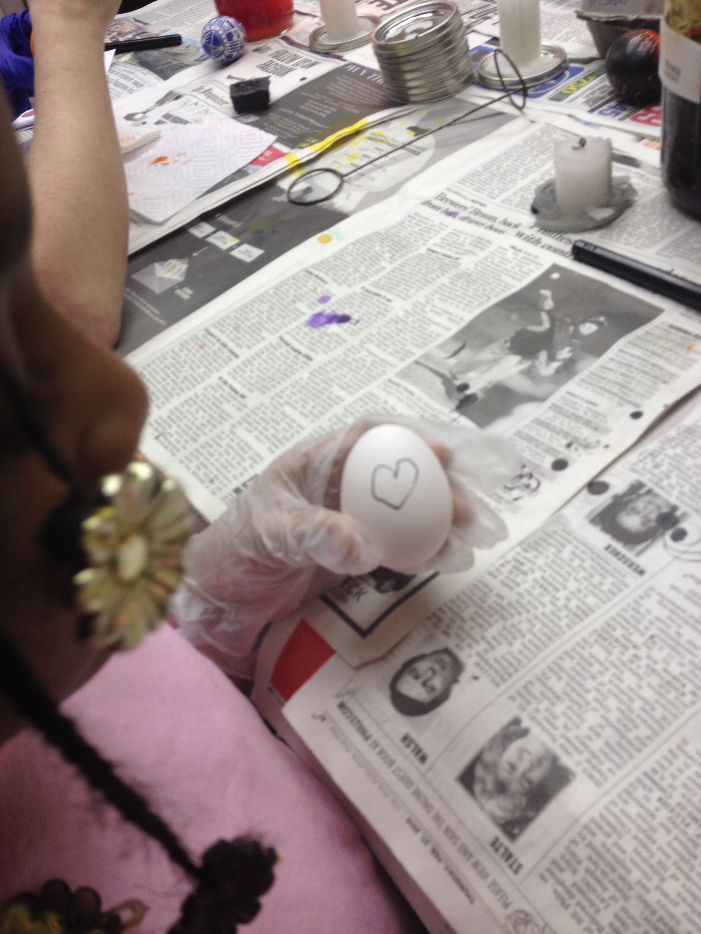 Arli was very good at pricking the egg-shell and declared that we all give her our eggs to open.