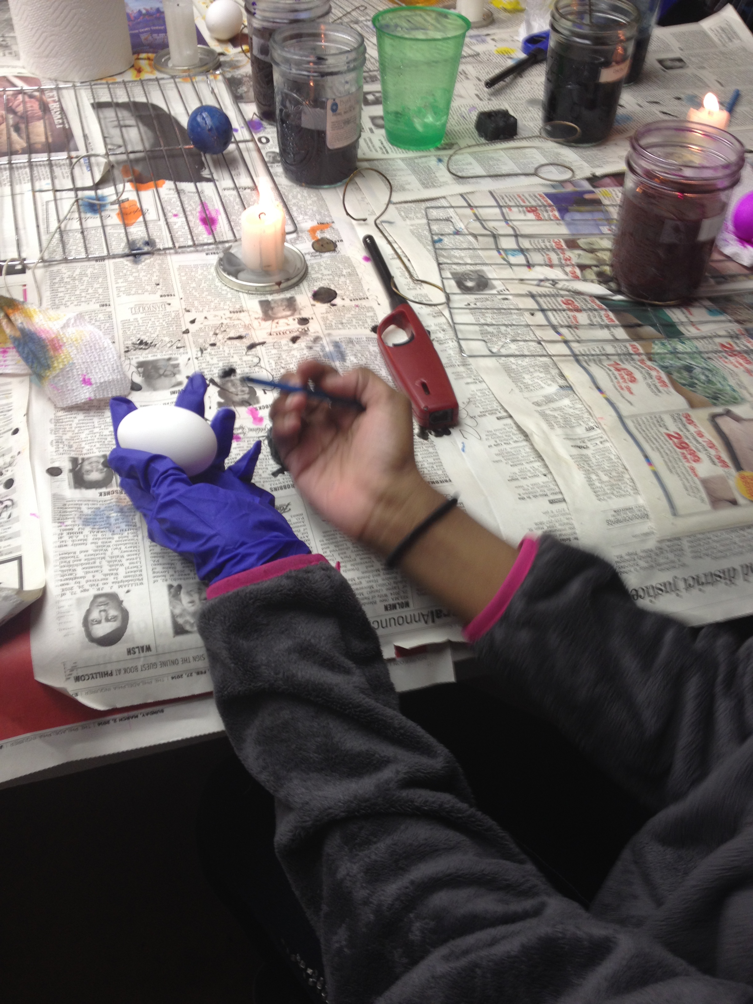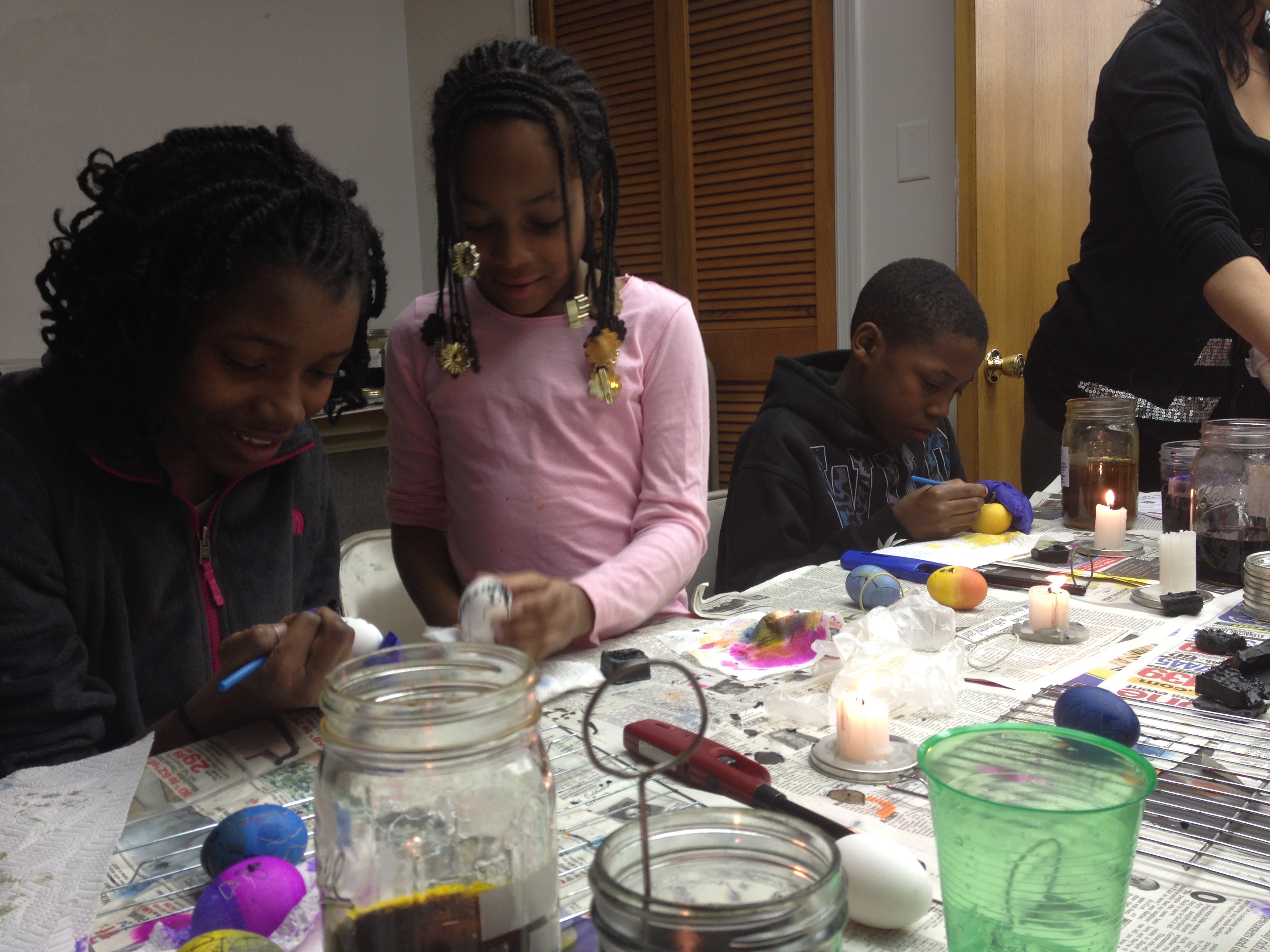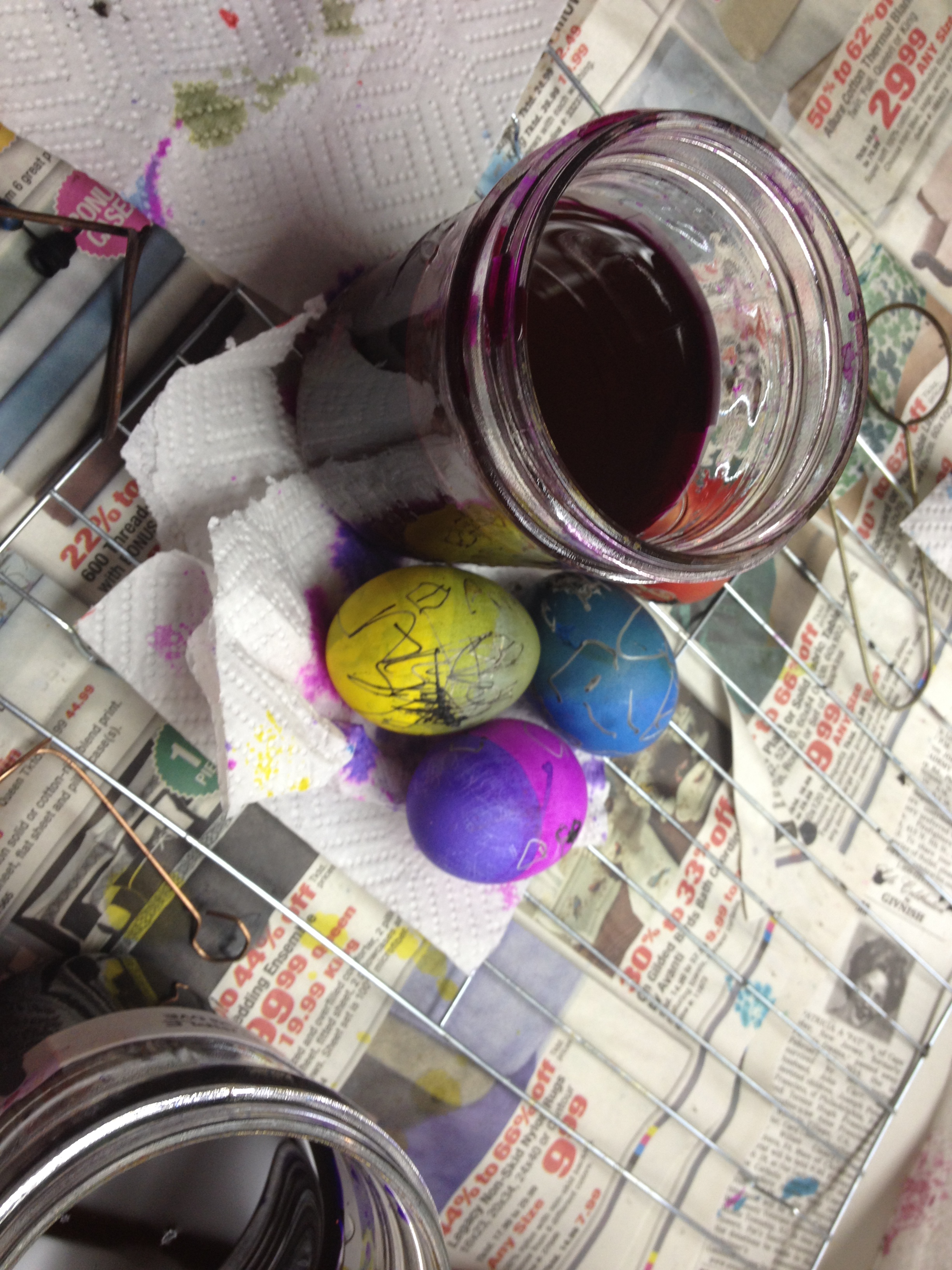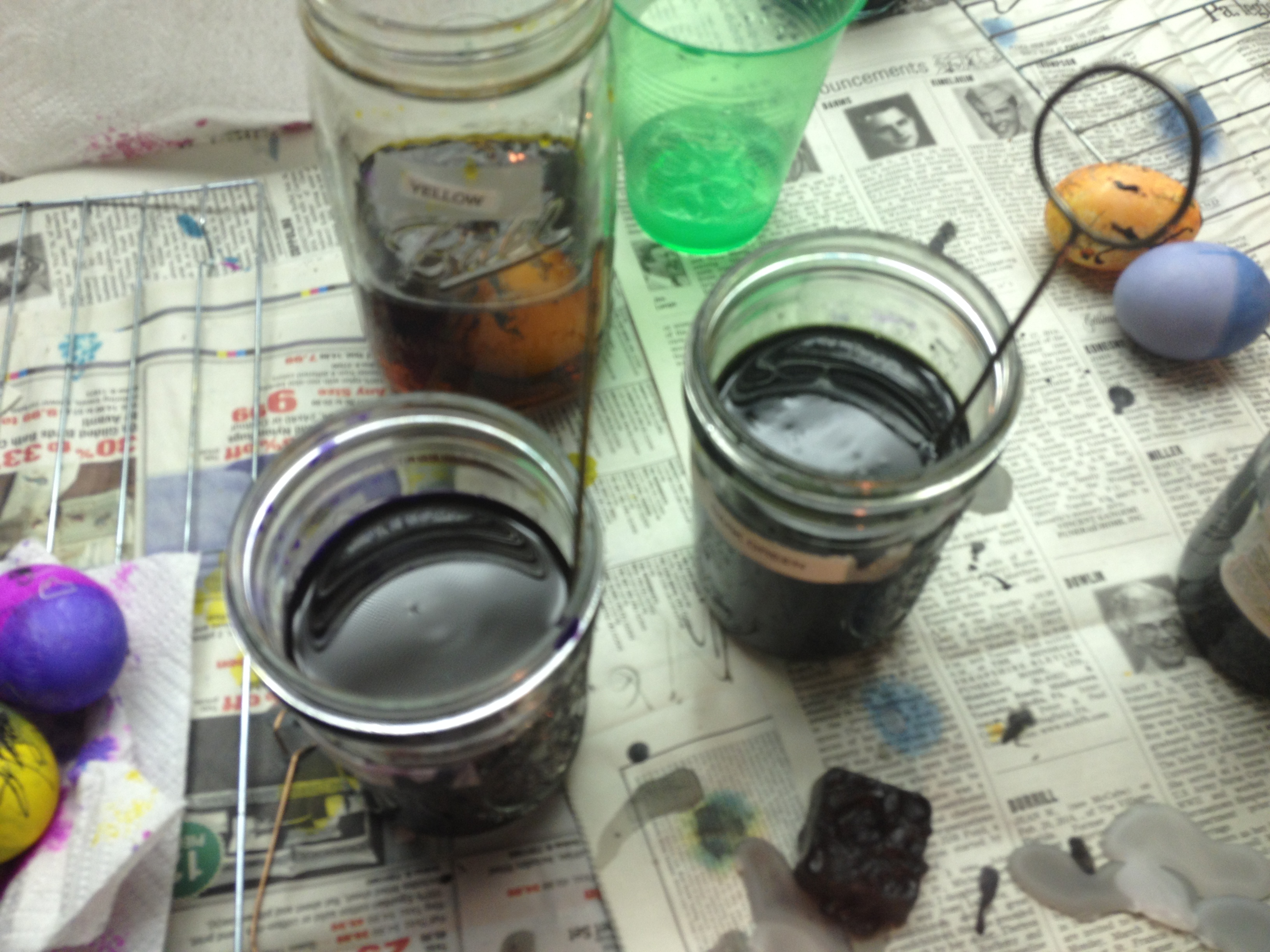 Next we dyed our eggs using one of the many jars of color available.