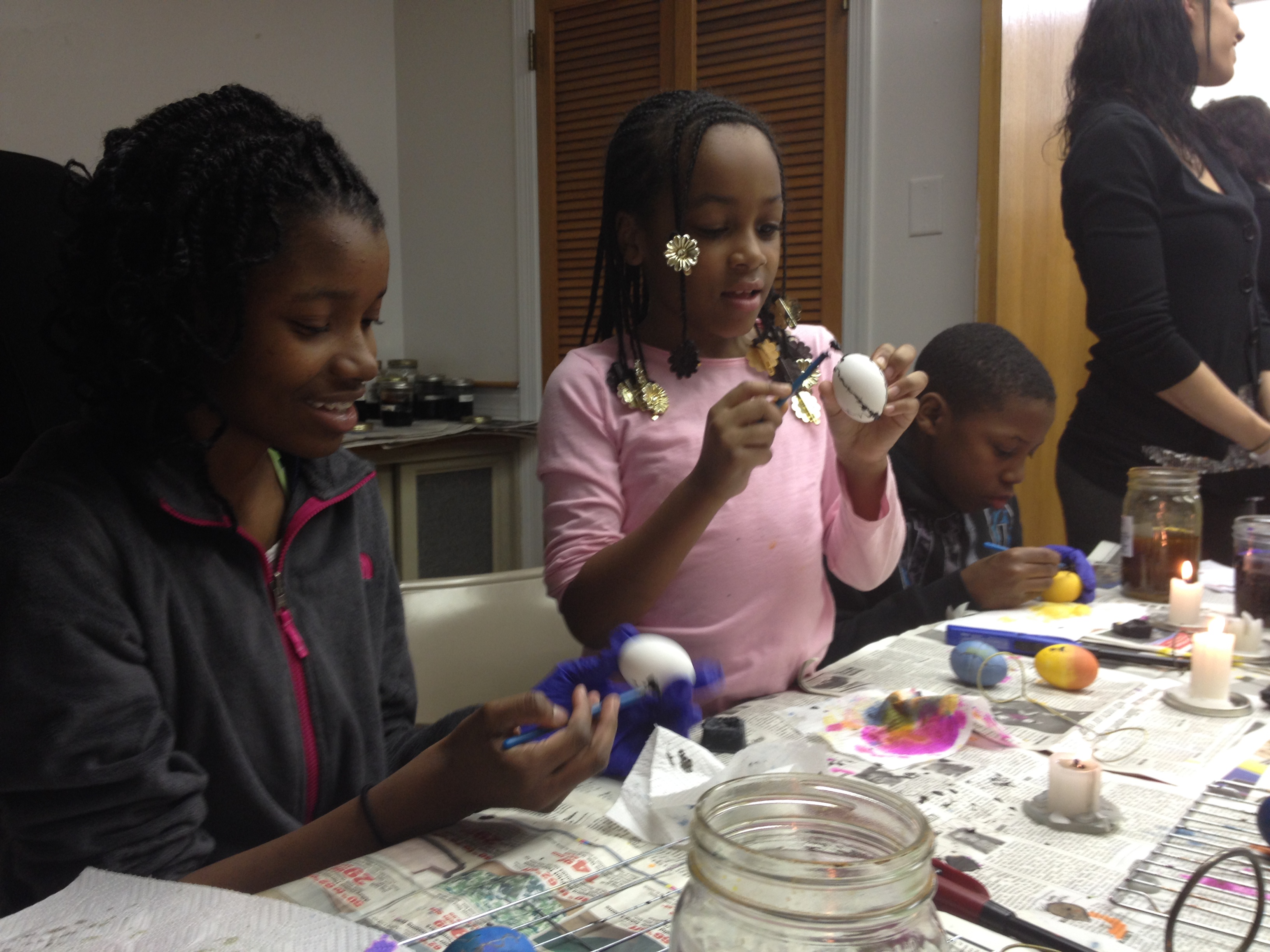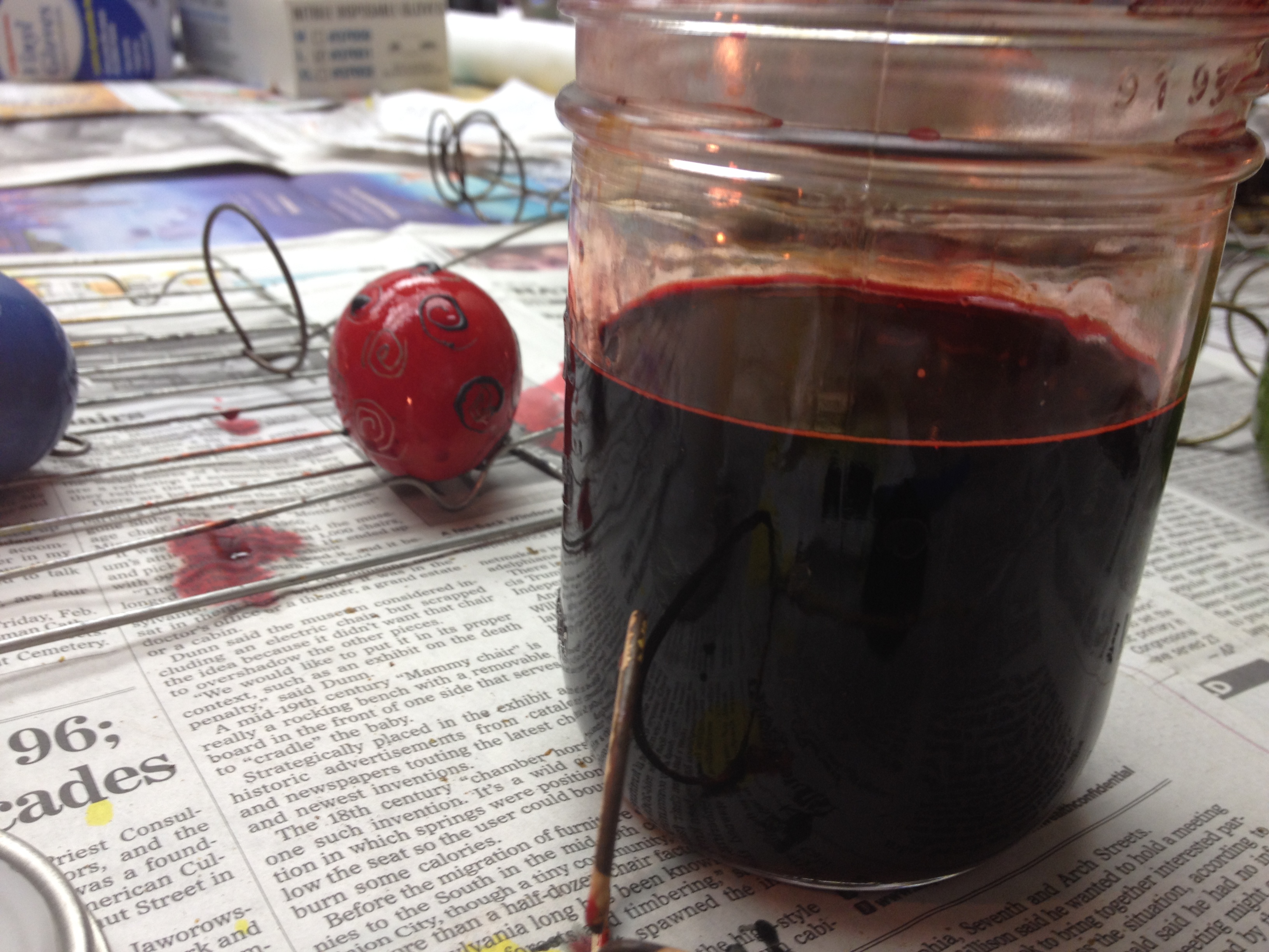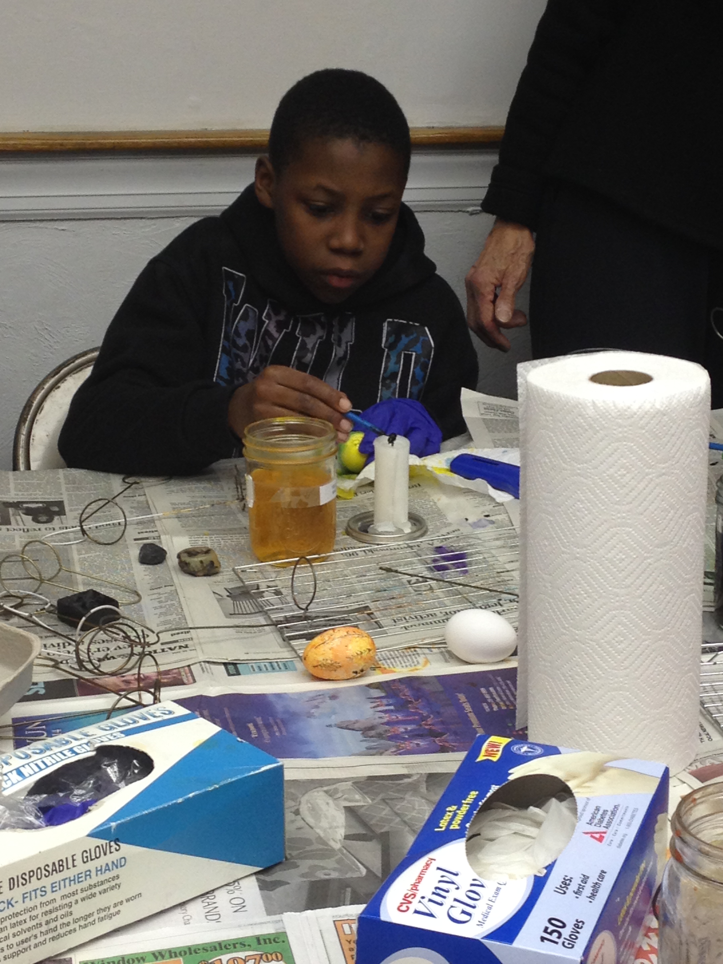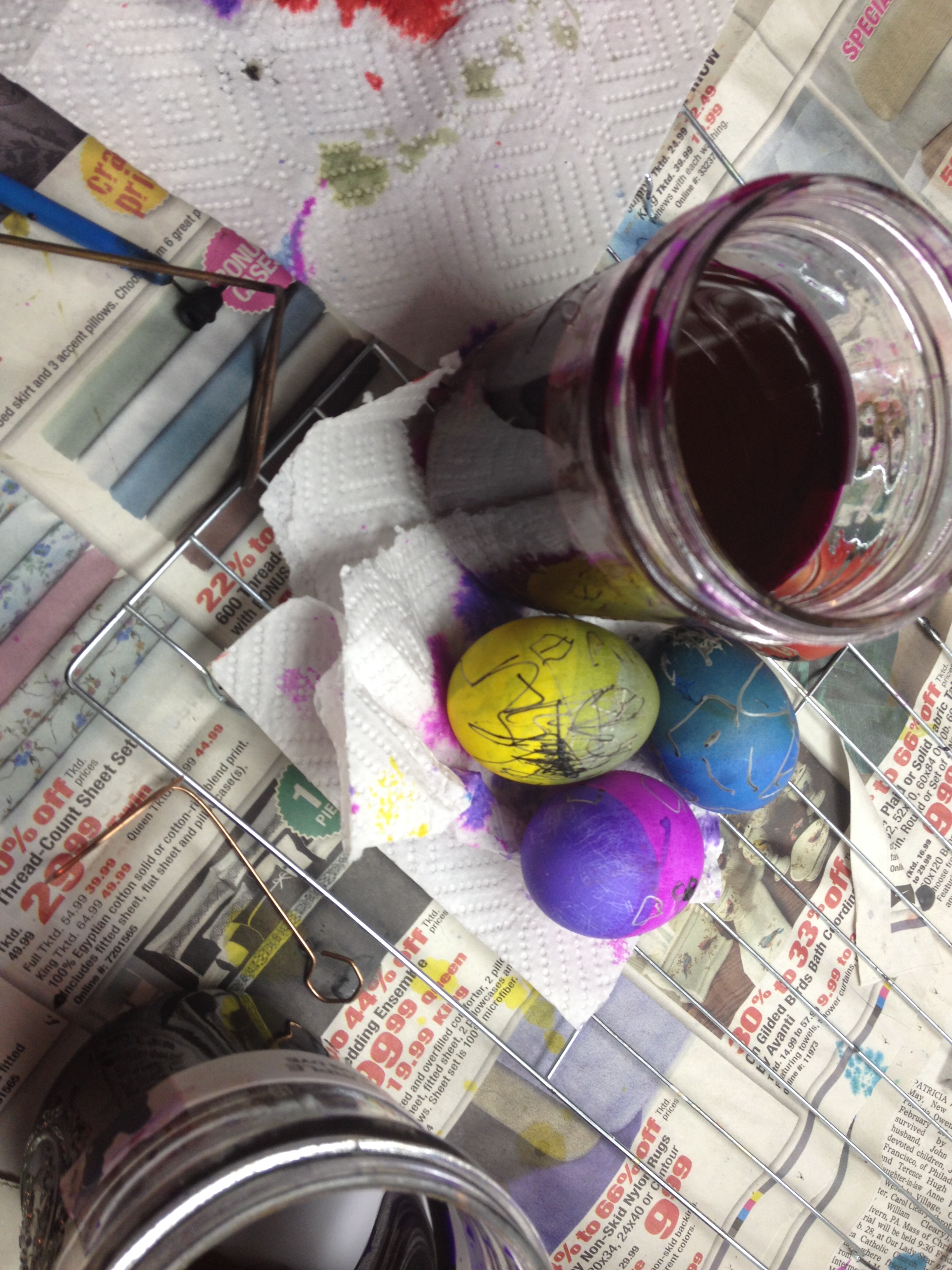 Next we dyed our eggs using one of the many jars of color available.