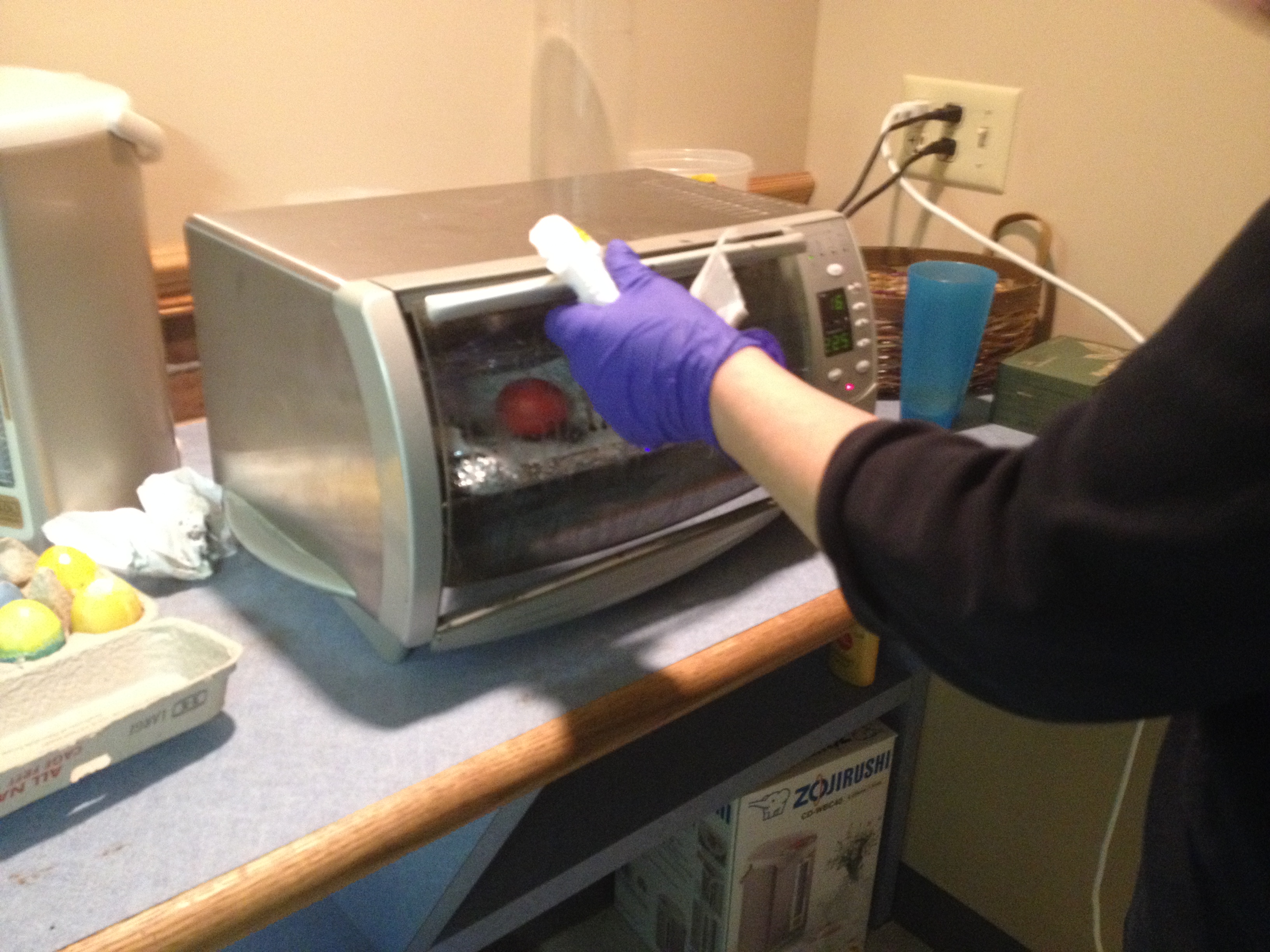 After draining the content of the egg, it was time to melt the wax. We used a little toaster oven for this.