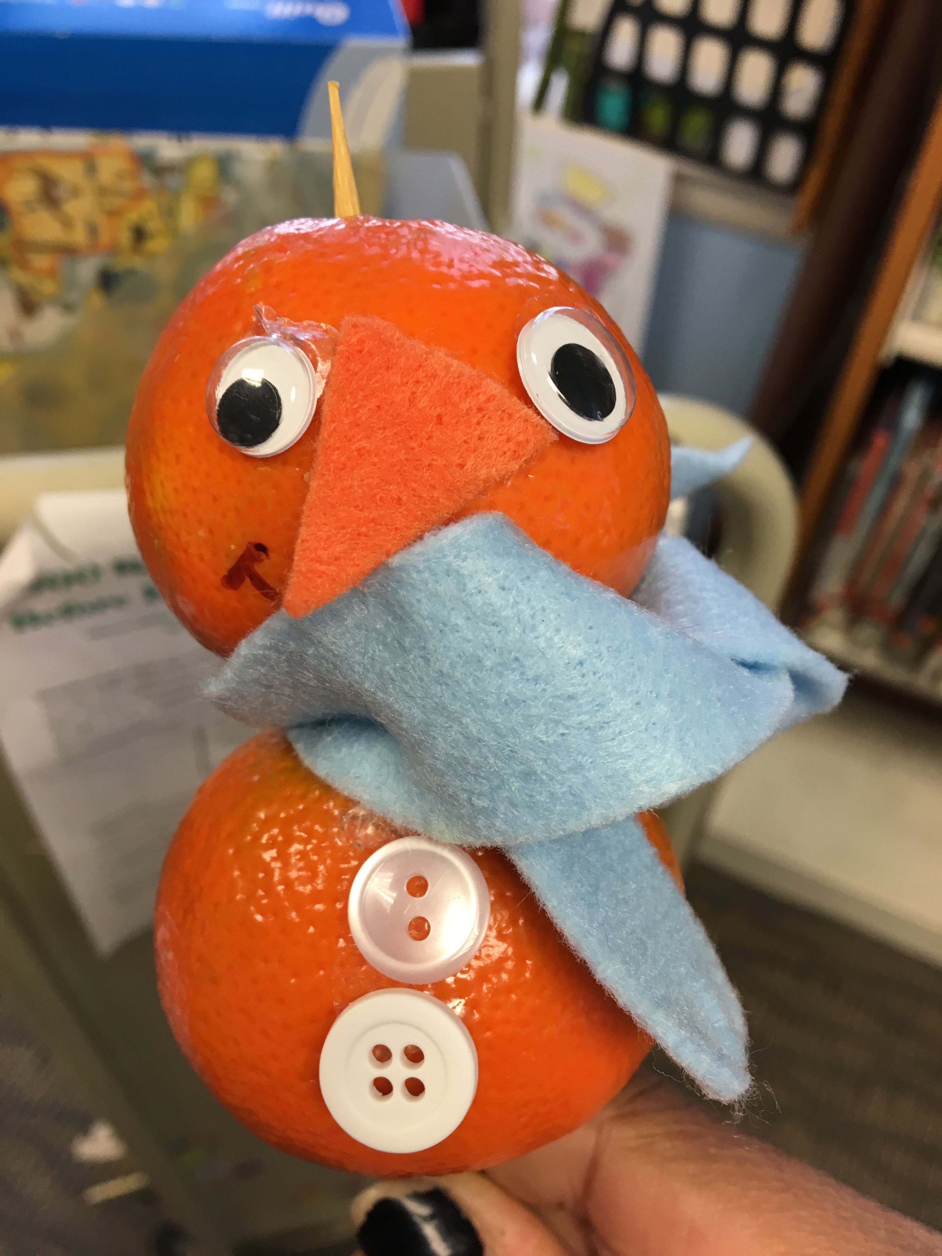 When The Librarian visited my library for storytime we had a blast creating mini mandarin-snow people!