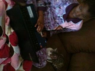 When I went to borrow Fat Mittens or Midnight I incorrectly assumed an easy exchange from my BIL but was surprised at the level of attitude he gave me! Instead of a flat-out NO he encouraged me to visit his neighbors who had had a litter of kittens and had a few plethora to spare. Said neighbors indeed had has a plethora of cats and after some discussion gave me one they called Sleeves. Sleeves, nee Liliana Cupcake has been introduced to my house and I swear it seems like she has been here forever! She has some lessons to learn such as no jumping on the stove or counter, less I have a cat on stove story****, personal space issues as she thinks that she should accompany me everywhere I go including the shower and that my yarn is NOT for her to bother.